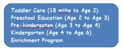 Upon entering pre-school, usually children will bring with them a variety of personal and social skills, values, and attitudes. No matter how little these are, it is important that they foster these values and from the relationships and experiences within the home and immediate environment, we will help them to cultivate their learning environment. We provide classes for: